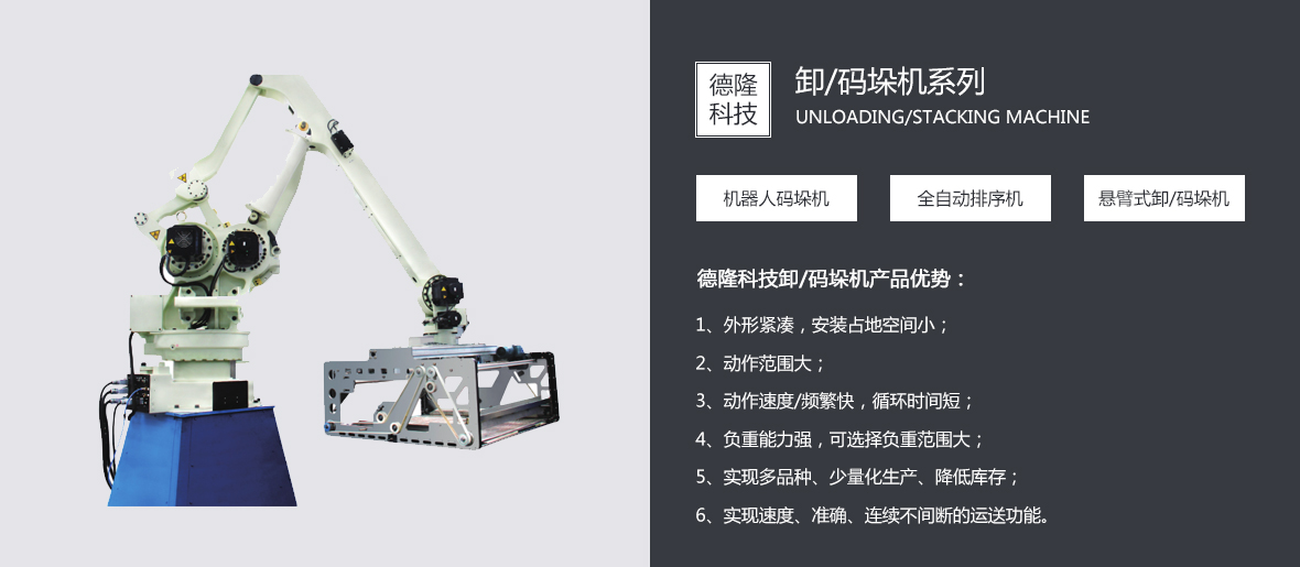 機(jī)器人碼垛機(jī) 懸臂式卸/碼垛機(jī) 接力式碼垛機(jī) 全自動(dòng)排序機(jī) 全自動(dòng)整層碼/卸瓶垛機(jī) 通過式全自動(dòng)打包帶機(jī)